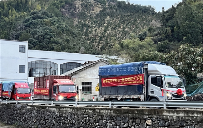 装载助农产品的货车从大下姜驶向杭州我爱我家总部