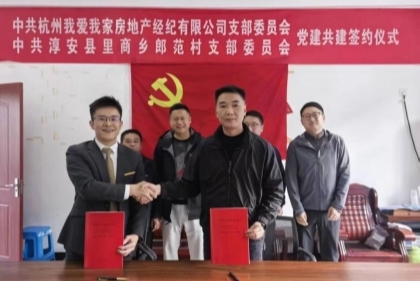 杭州我爱我家党支部书记与大下姜片区郎范村村委会书记签订共建协议现场