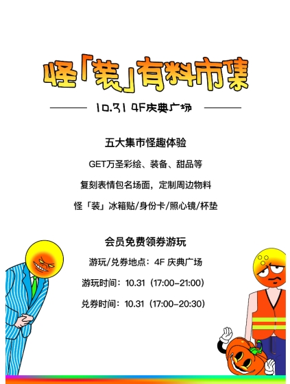 从率先破圈的emoji表情包预热,到五大怪趣市集的沉浸体验,再到「寻找坚美的TA」打卡活动,宁波阪急正在用一场精心策划的“奇形怪‘装’”,重新定义节日的意义,它不只是西方的传说,更是每个人都可以参与的快乐活动。它不限于10月31日那一晚,而是一段持续发酵、由我们共同书写的欢乐记忆。