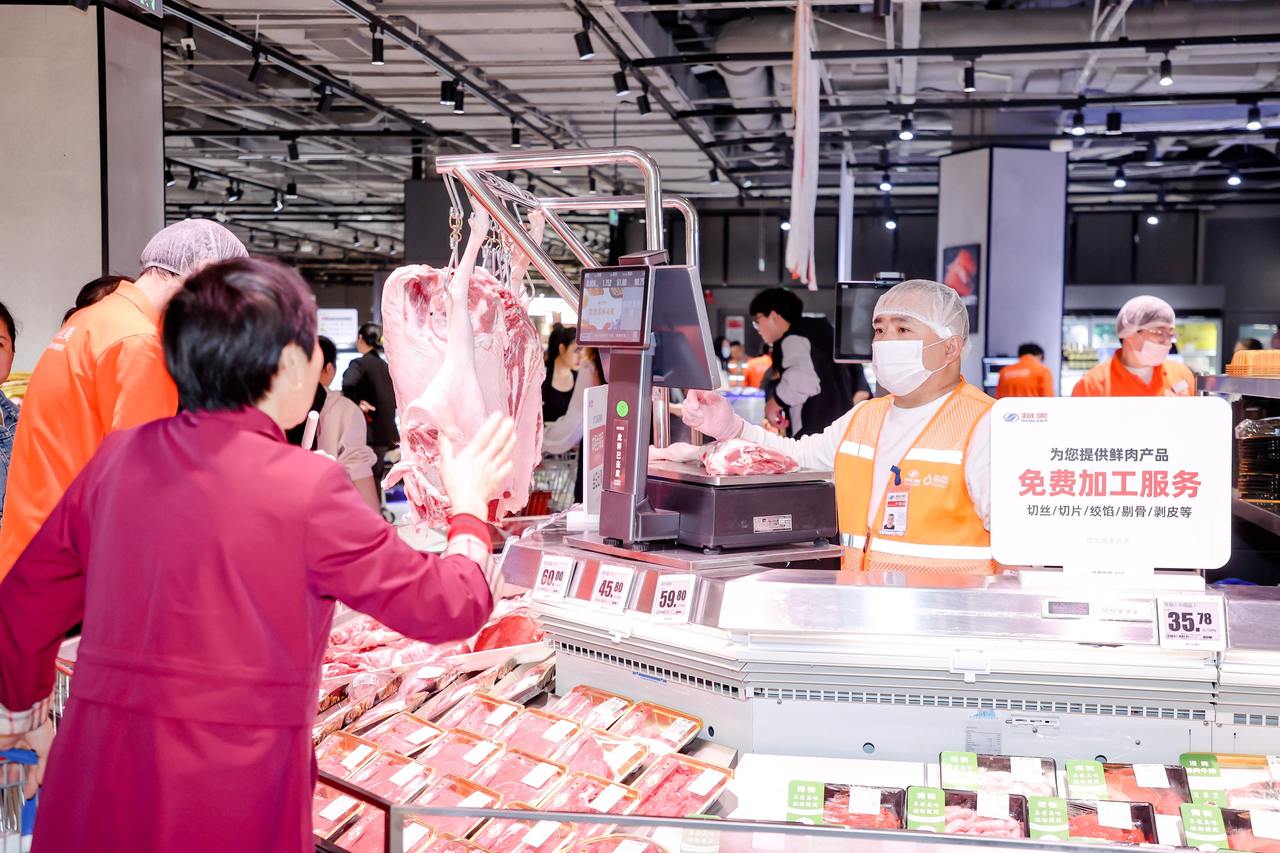在此基础上,门店进一步拓展便民服务内容:增设便民服务台,配备便民休息区、免费茶饮与冰块、充电宝租借、放大镜、微波炉、血压测量仪等设施,让顾客在购物之余也能感受到家一般的温暖;生鲜区提供鲜果去皮切块、禽肉按需切丝切片等精细加工服务,水产区也同步配备专业宰杀及去内脏等预处理服务,让顾客从在店选购到回家烹饪都更省心省力。这些暖心细节共同营造门店的一站式便捷购物体验,真正实现“服务有温度,购物零负担”,让每一位走进门店的顾客都能感受到“新物美”带来的贴心与便利。