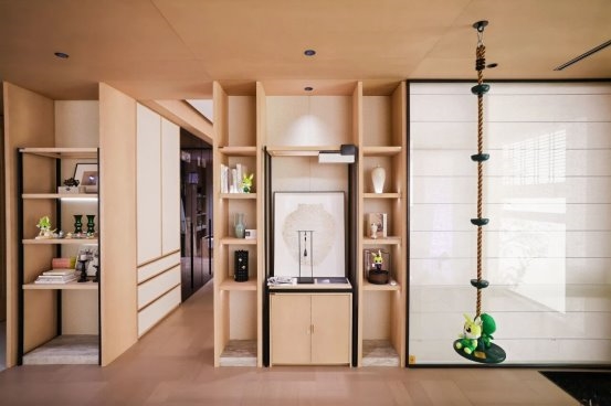本次展会,兔宝宝不仅仅是参与者,更是“好房子”理念的坚定践行者。自品牌创立以来,兔宝宝始终秉持着“让家更好”的企业使命,坚信真正的好房子,源于对材料的严格把控、对设计的匠心钻研。全屋采用板木结合工艺,其中柜体,精选芯选系列—桉芯板,在ENF级极致环保标准之上,更赋予其除醛抗菌的环保黑科技,以静默守护之势,为家人构筑起第一道健康屏障;而柜门,甄选橡木直纹天然木皮,覆以温润如玉的环保水性漆,将木纹的天然之美与现代技艺融为一体。此外,兔宝宝还融入适老、适幼及无障碍通行等细节,无论是小户型的空间扩容,还是大户型的风格统一,都能通过定制化方案,让家居空间与生活习惯完美适配,真正实现健康、智能、可持续的理想人居。