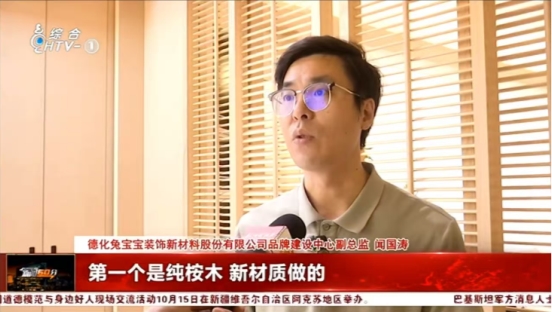 ▲潮新闻、杭州电视台等多家媒体采访了兔宝宝品牌建设中心副总监闻国涛