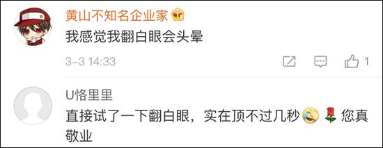 在被网友们齐齐点赞“人工翻白眼”敬业后,他还在微博上发起了新一轮挑战活动——比比谁能翻白眼坚持得最久。