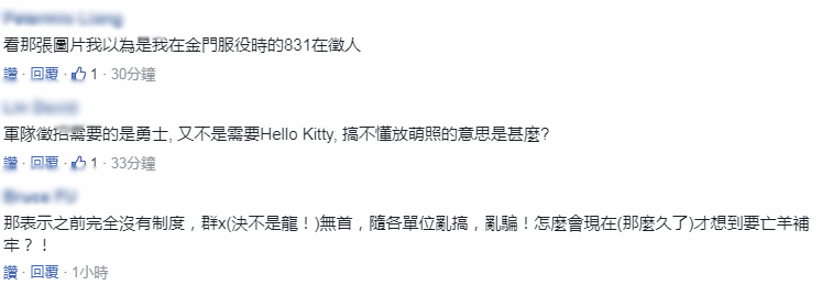 而这次台“国防部”要求撤下基层募兵广告后,也有岛内网友表示,“军队征招需要的是勇士, 又不是需要Hello Kitty, 搞不懂放萌照的意思是什么。”
