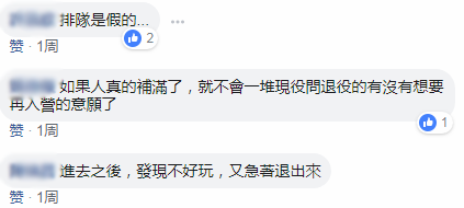 针对这些引起误会的征兵广告,当时就有不少人提出质疑,有人讽刺称民进党当局“竟然全部都用骗的”,也有人调侃称,在这种征兵广告下,会有人当兵之后发现不好玩,又急着退出来。