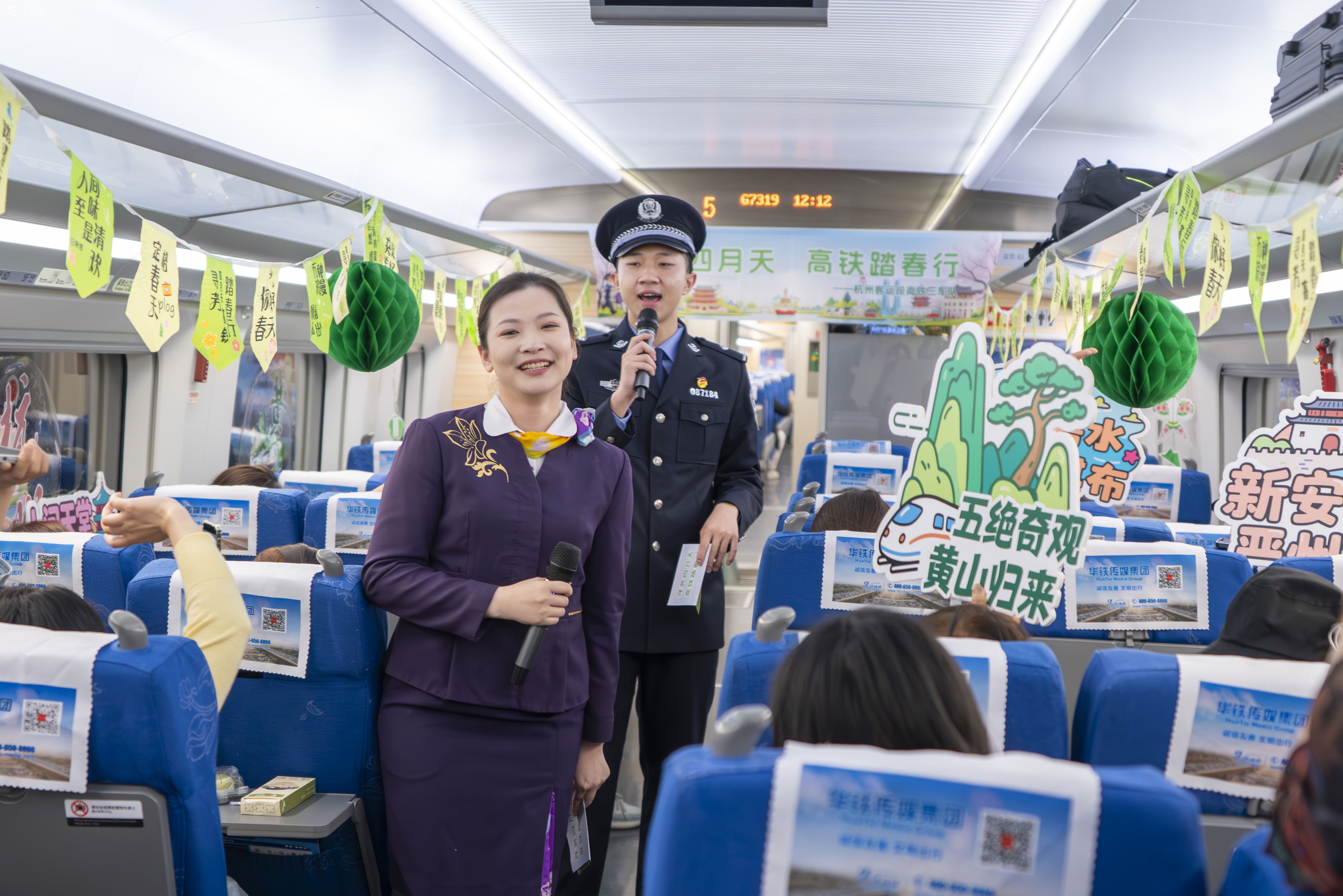 活动在一曲经典黄梅戏《天仙配》的悠扬唱腔中拉开帷幕。熟悉的戏曲旋律在车厢内萦绕,引来阵阵掌声与叫好声,不少旅客拿出手机记录下这充满传统韵味的车厢瞬间。