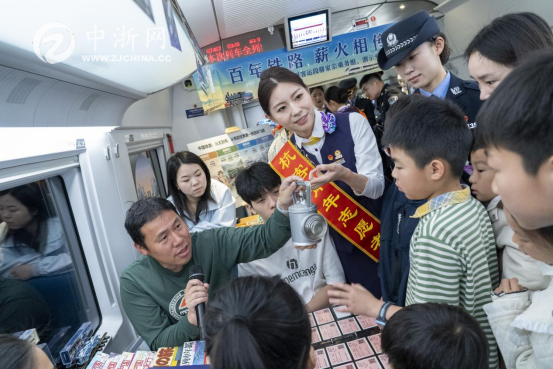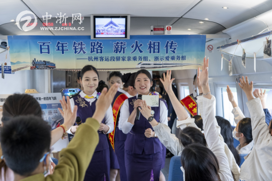 杭州客运段“驿家亲”“浙示爱”乘务组联合开展主题活动4月28日,正值浙江省中小学生春假,杭州客运段高铁四车队“驿家亲”乘务组联合高铁三车队“浙示爱”乘务组,在G7467次列车上举办“百年铁路 薪火相传”主题文化活动。列车化身为流动的文化课堂,带领旅客沉浸式回望中国铁路百年征程,传承奋斗薪火。